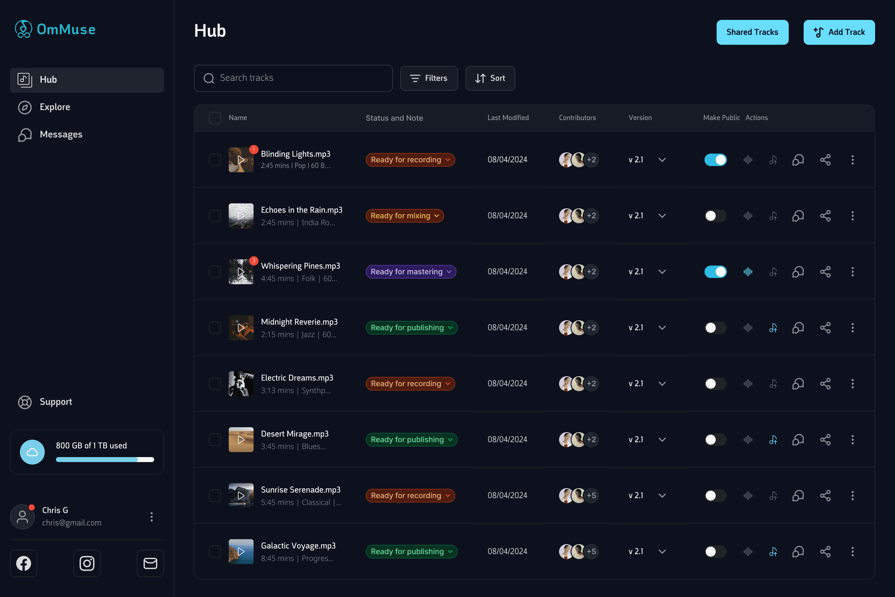 Effortlessly share and collaborate on music files, stems, and complete tracks, enhancing your creative process with seamless teamwork.