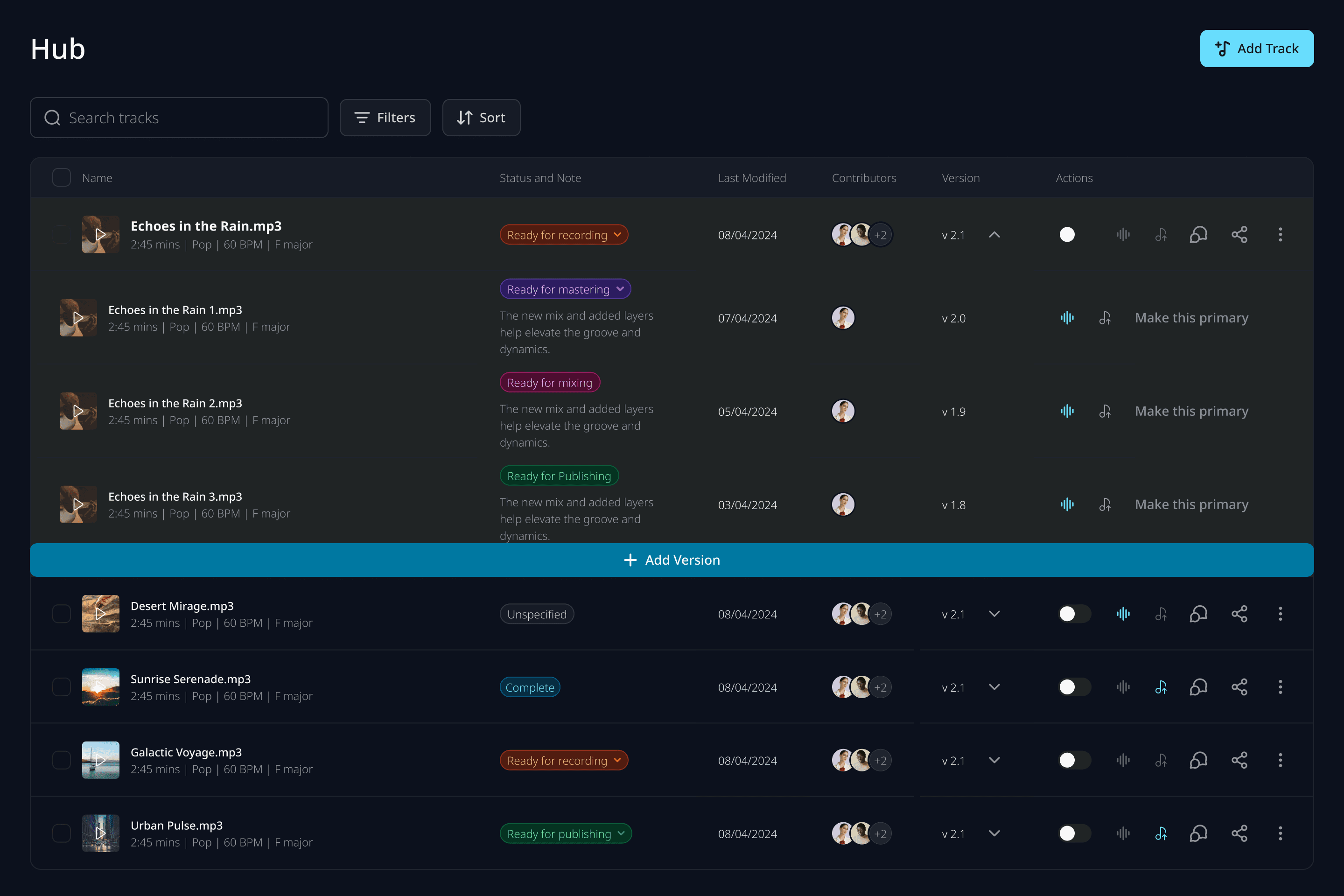 Seamlessly track and manage multiple iterations of your tracks, allowing you to revisit and refine your creative process with ease.
