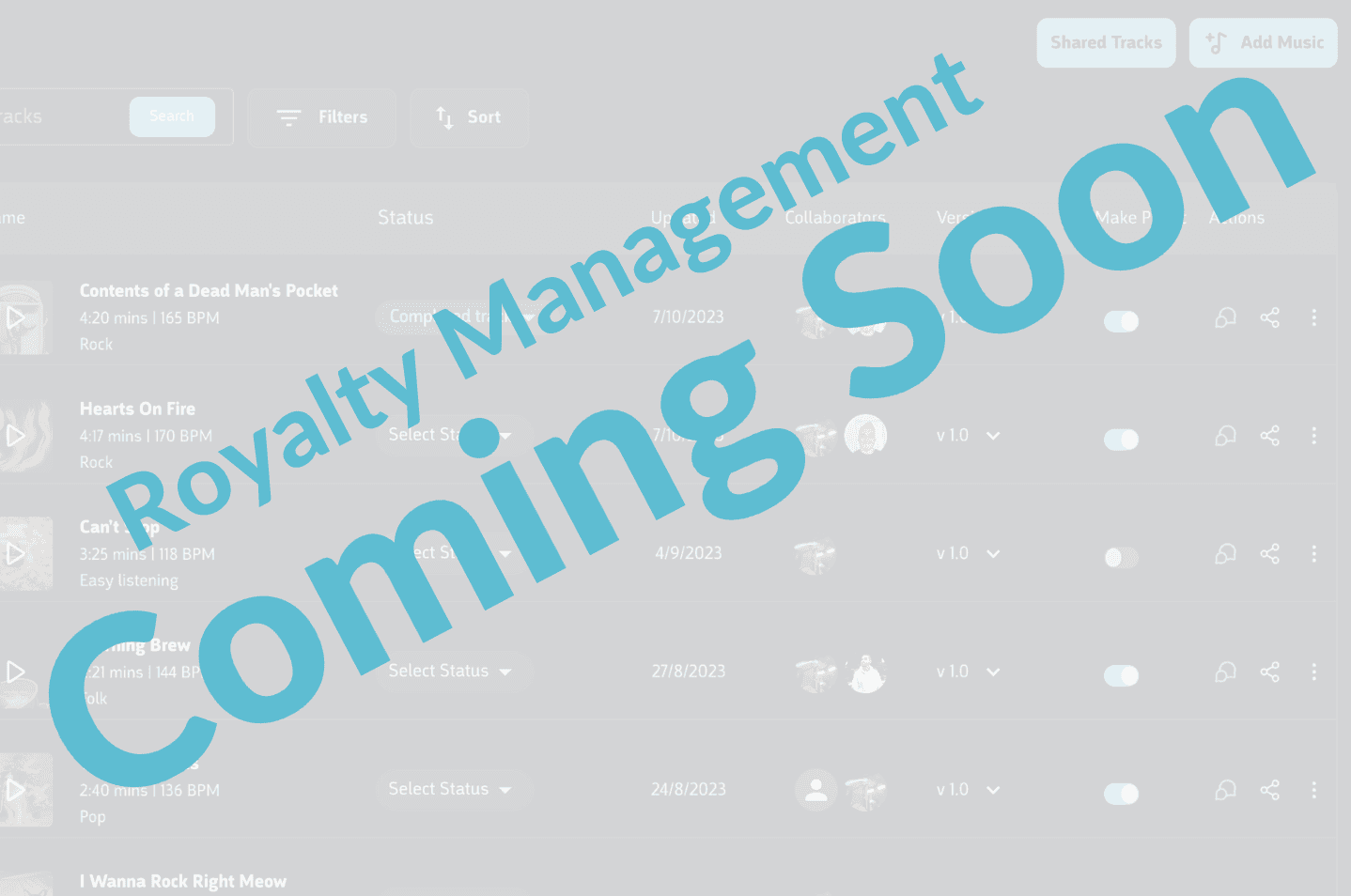 Track and manage your royalty payments, ensuring accurate and timely compensation directly to your account through our comprehensive dashboard (coming soon)."